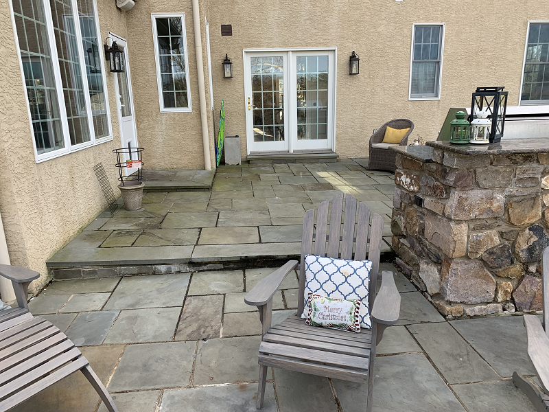 Before- The outdoor patio is a nice size but has aged and the grill is far from the door.