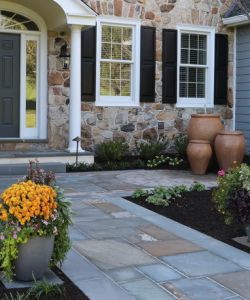 - Landscaping: Shade loving Hydrangea, Ornamental Grasses and evergreen Boxwoods around flagstone patio